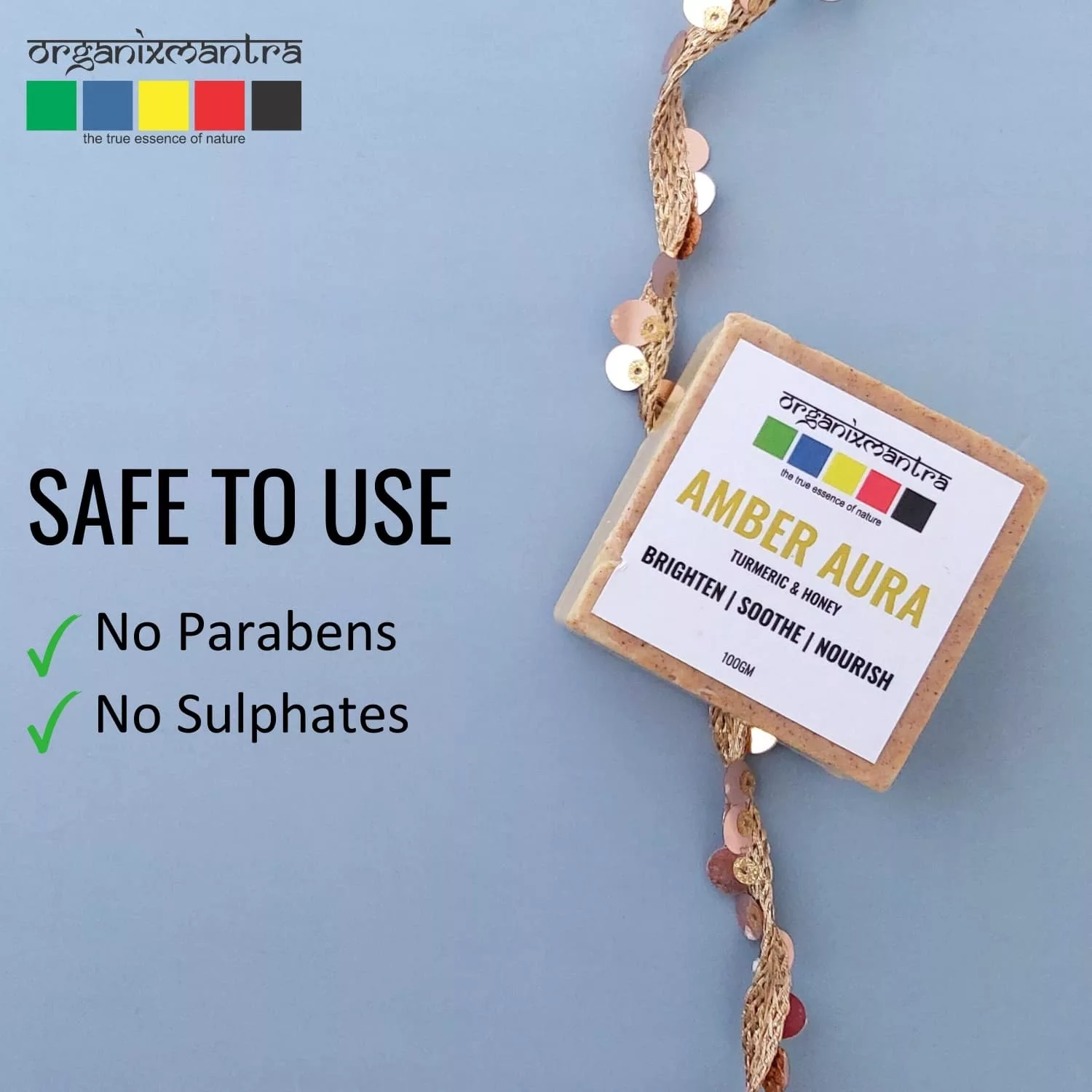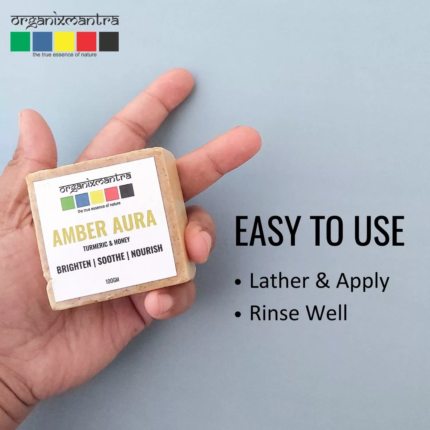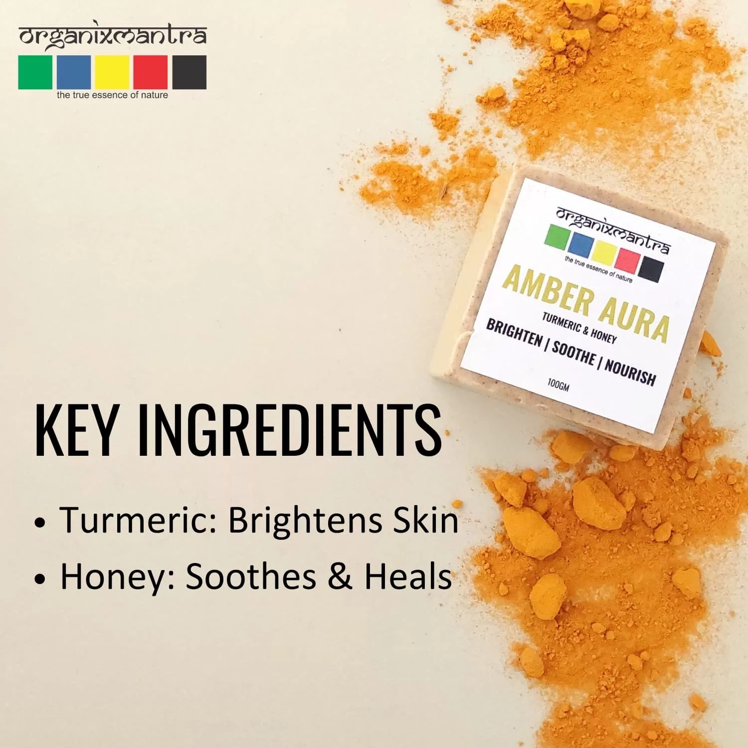 Discover the essence of natural skincare with Organix Mantra AmberAura Bath Soap. Our unique formula combines the nurturing properties of Turmeric and Honey with a luxurious blend of natural oils and milks. Each ingredient is carefully selected to ensure your skin receives the utmost care.