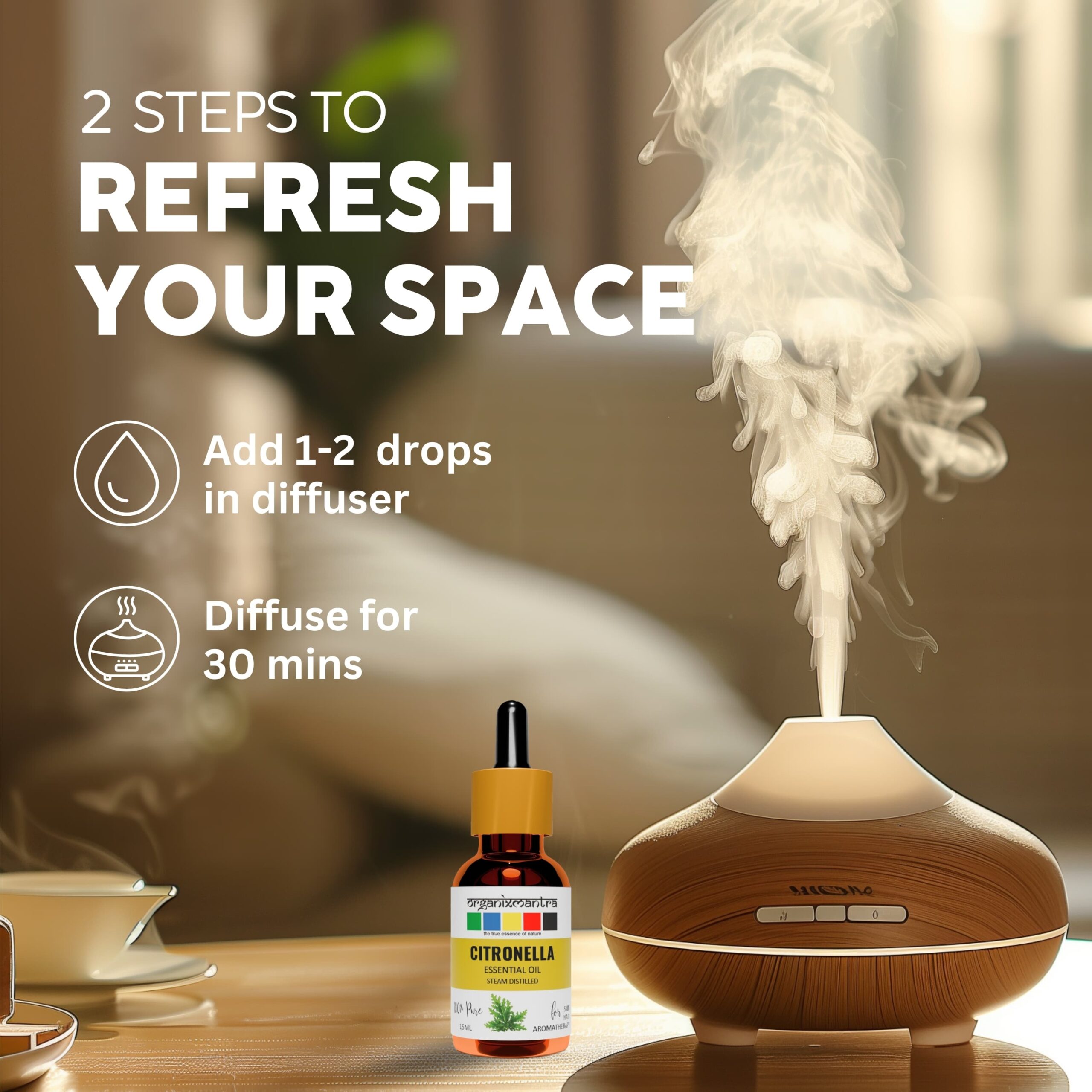 INSECT REPELLENT/ROOM FRESHENER – Spraying water infused with citronella not only repels the insects but also refreshes the air in the room.Â