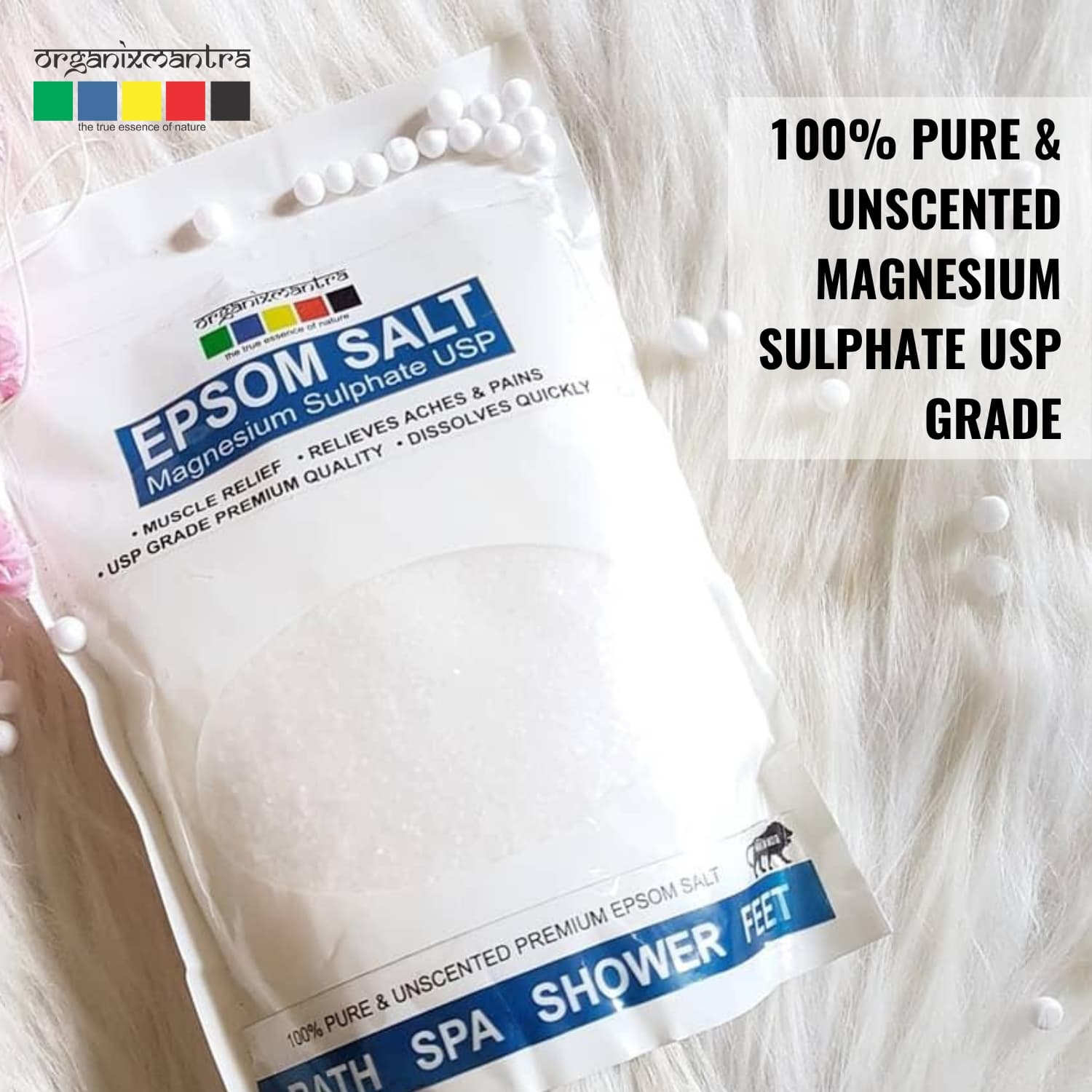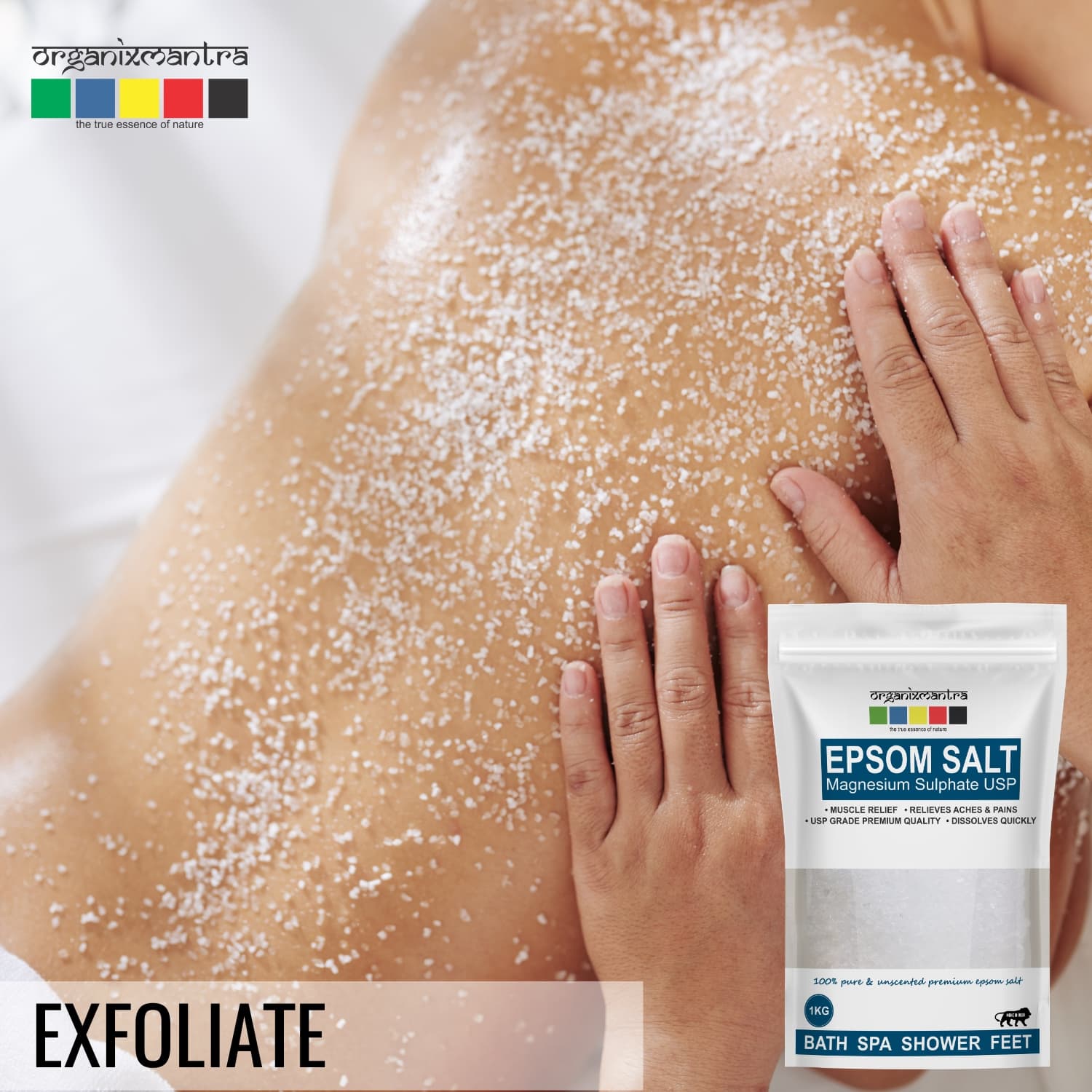 I have been using the Organix Mantra Epsom Bath Salt for about 5-6 months now and I must say that it is just right for a relaxing bath and a visible skin cleansing.It is 100% pharma grade pure salt, made in our good India and this odourless, colourless salt dissolves easily even in lukewarm water. It has now become an absolute necessity for my bath :)I have also subscribed for auto delivery of this product every 2-months.