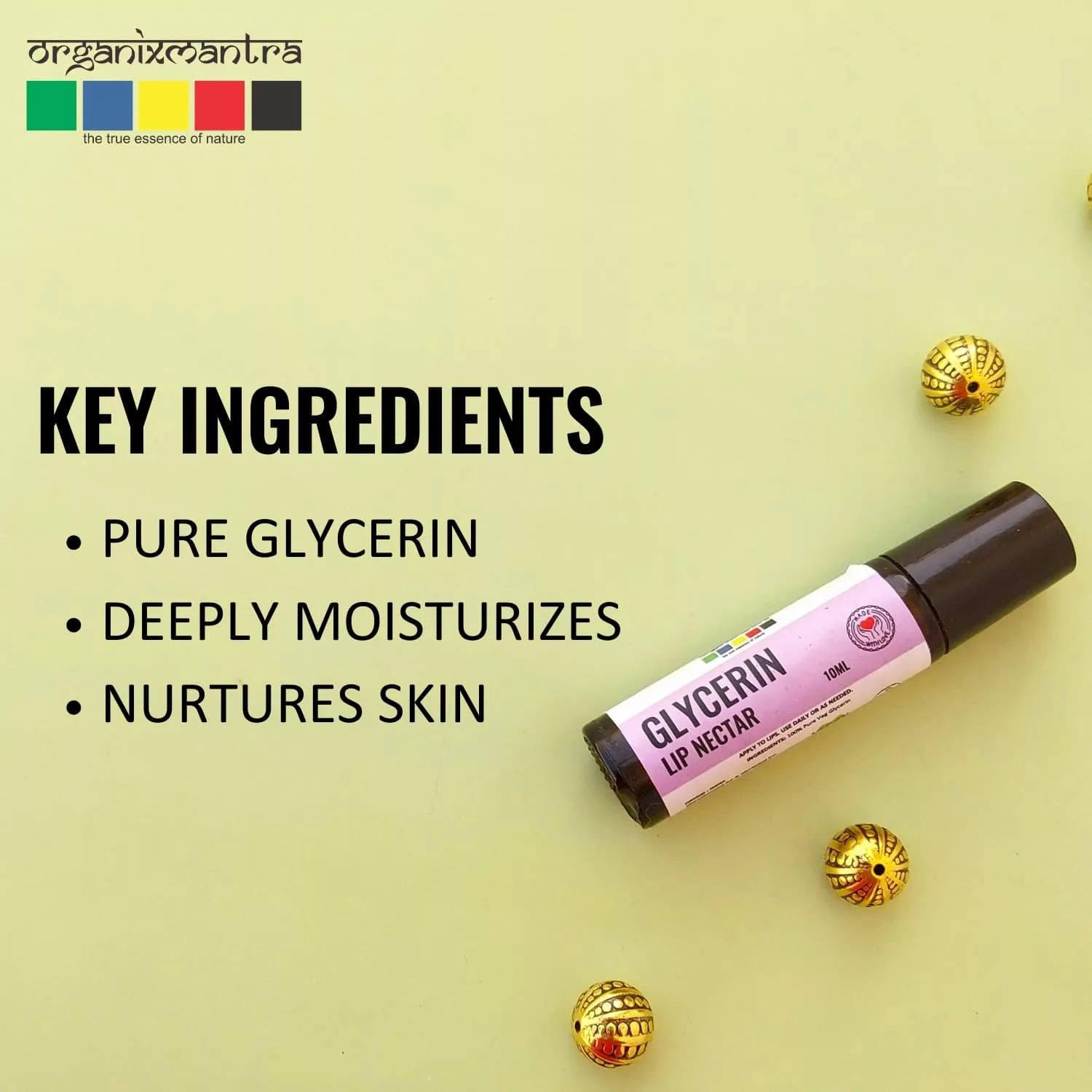 - Soothing Hydration: Experience a tranquil caress with Organix Mantra Glycerin Lip Nectar, curated to provide a soothing touch to your skin. Its high glycerin content is known to attract moisture, potentially leaving your skin feeling supple and soft.