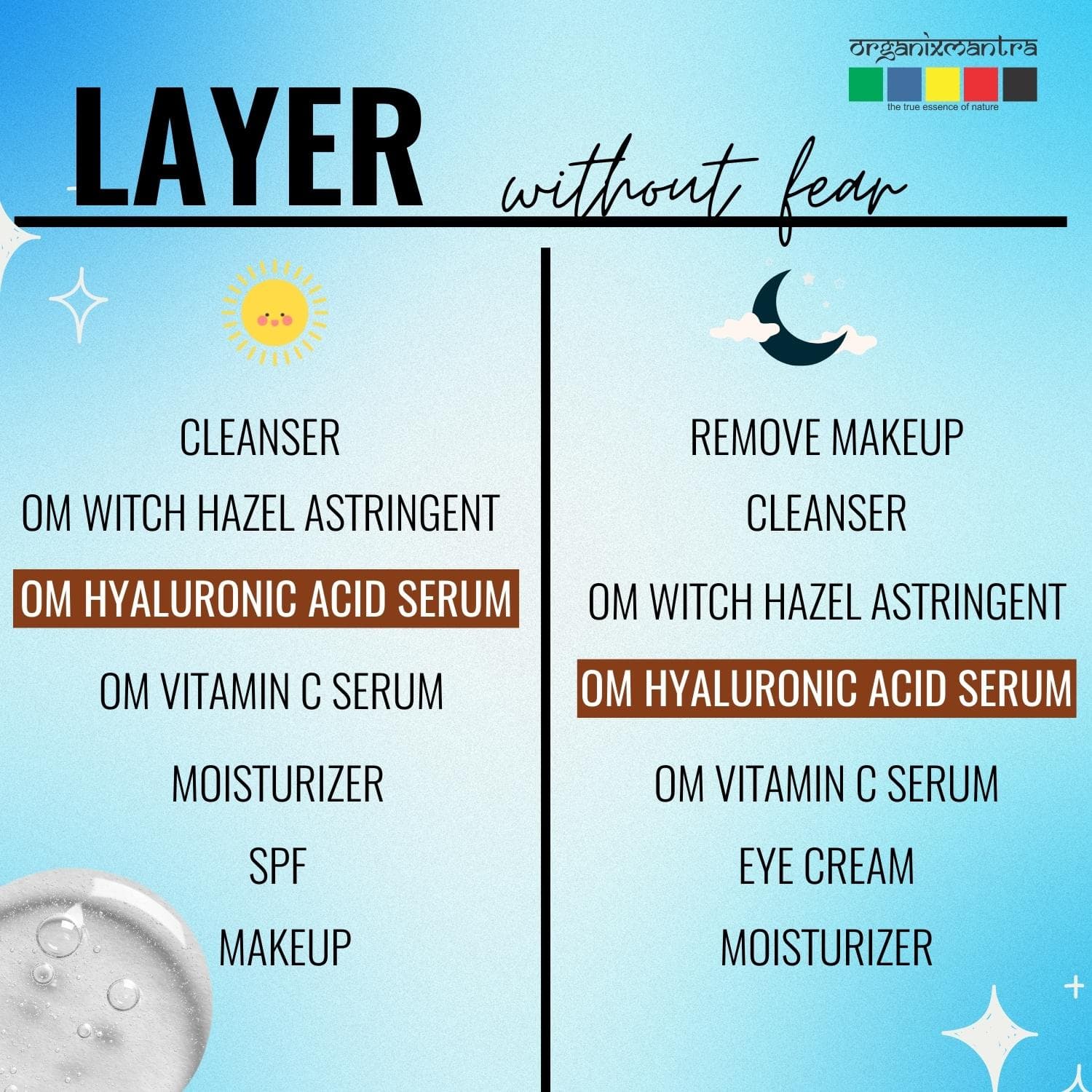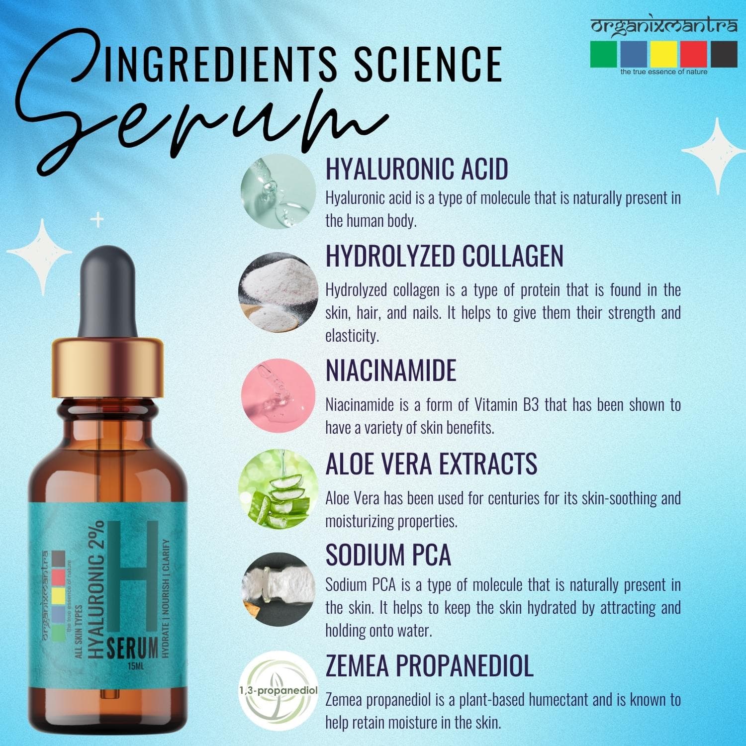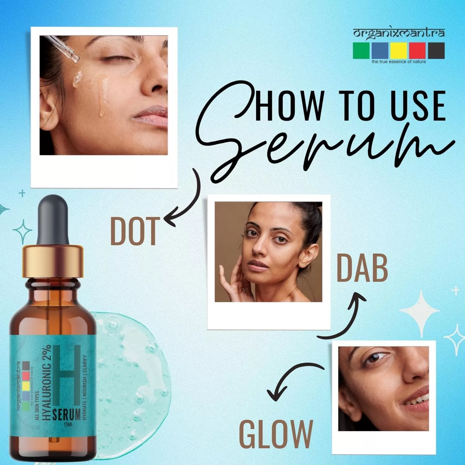 The organixmantra serum is light weight and glides into the skin seamlessly.It has made my skin hydrated,soft and supple i follow this up with a good moisture.It works great for sensitive skin,it is a must try.