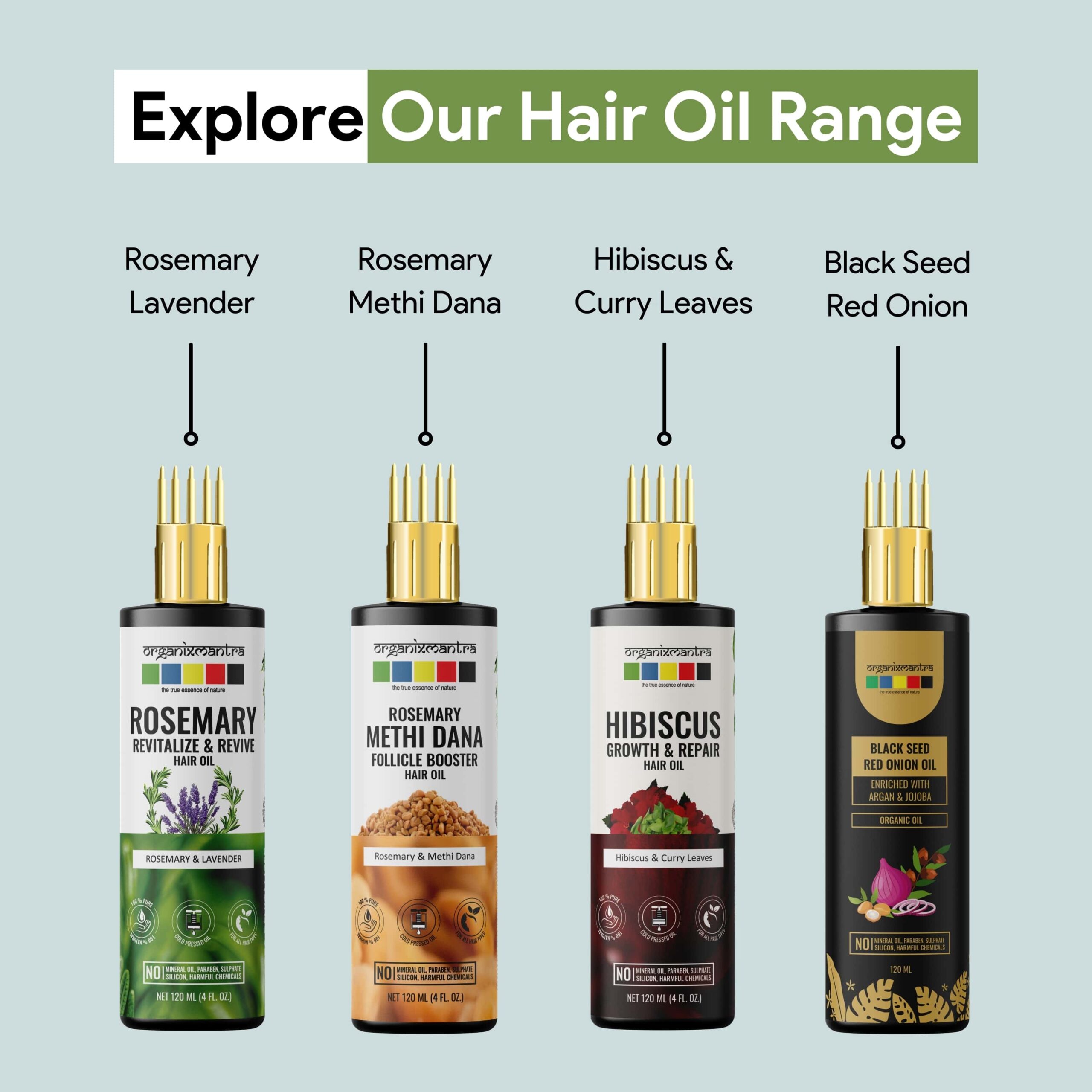 Discover the rejuvenating power of nature with Organix Mantra’s Rosemary & Lavender Revitalize & Revive Hair Oil. This meticulously crafted product blends traditional herbs such as rosemary and lavender, renowned for their aromatic qualities and benefits to hair health, into a soothing hair care solution. It features a potent mix of nourishing oils including jojoba, coconut, and olive, chosen for their effectiveness in enhancing hair and scalp health. This hair oil is designed to strengthen and support your hair, providing the ideal conditions for natural vitality and growth. Additionally, the calming scent of lavender offers a soothing aromatherapy experience, making your hair care routine a more relaxing affair. The formula also improves hair texture, making it softer and more vibrant without any greasy after-effects. Committed to ethical practices.
