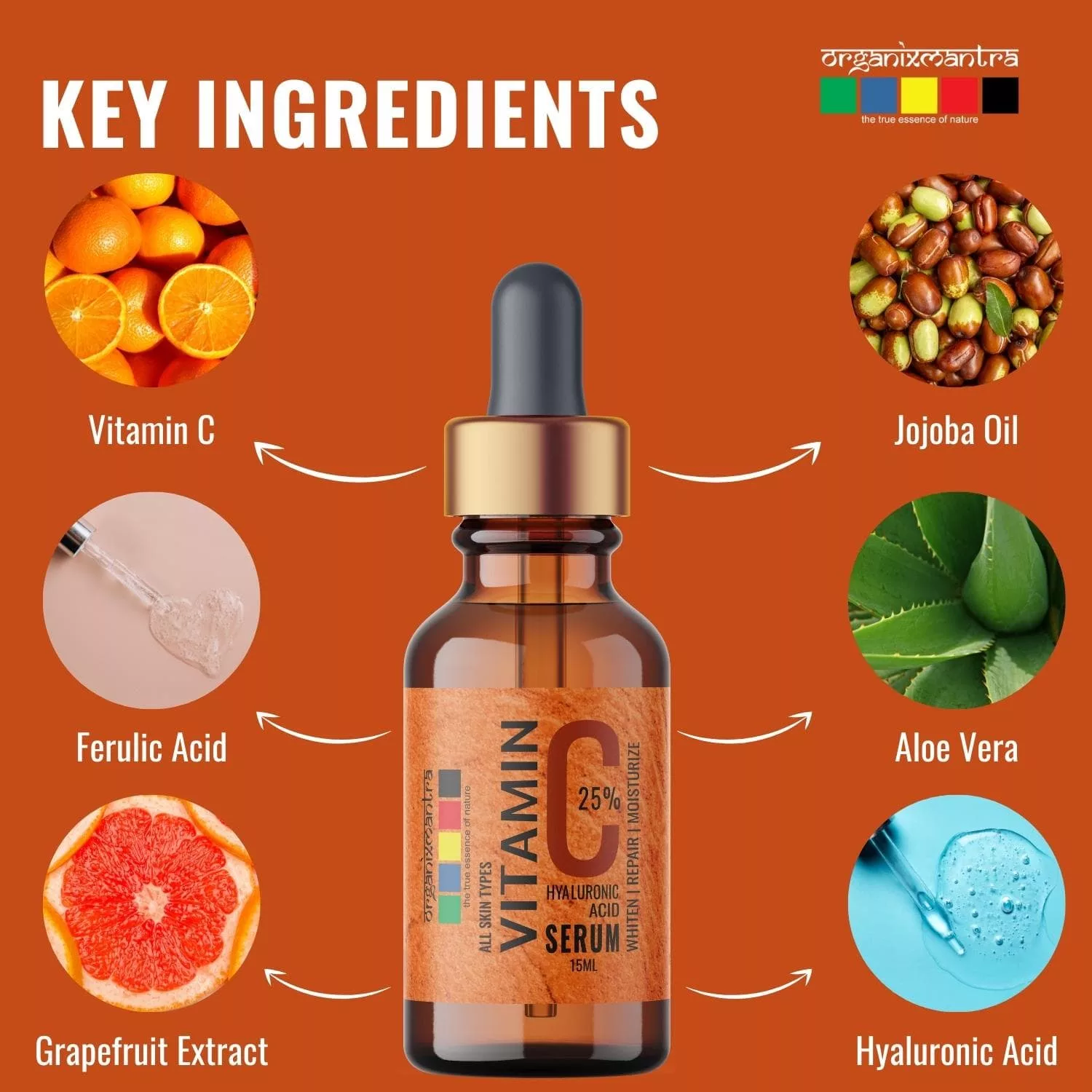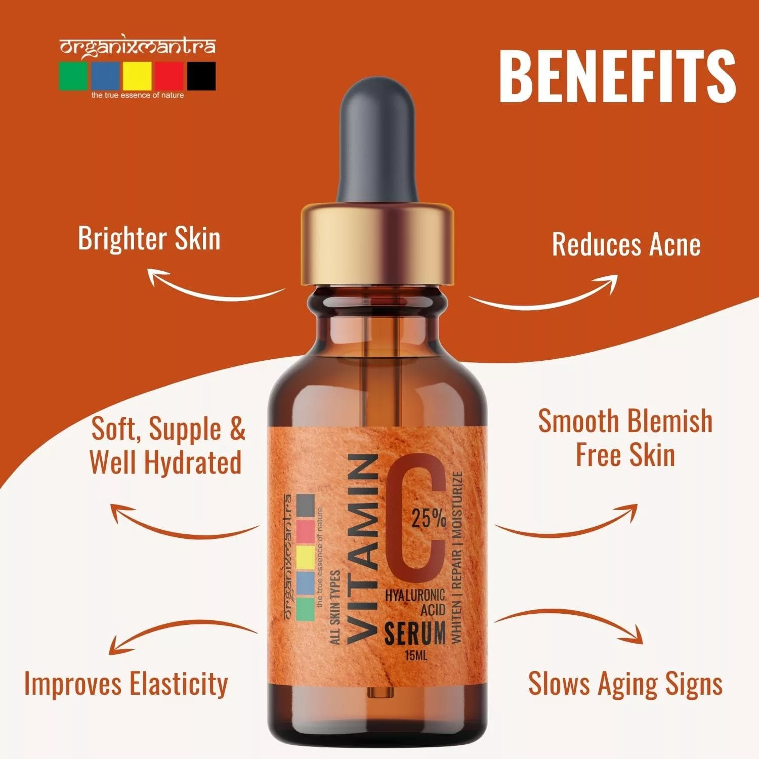 - SKIN BRIGHTEN – Vitamin C Serum is known for its natural skin brightening properties. Applying the serum regularly may help in fading dark spots, and lightening hyperpigmentation.